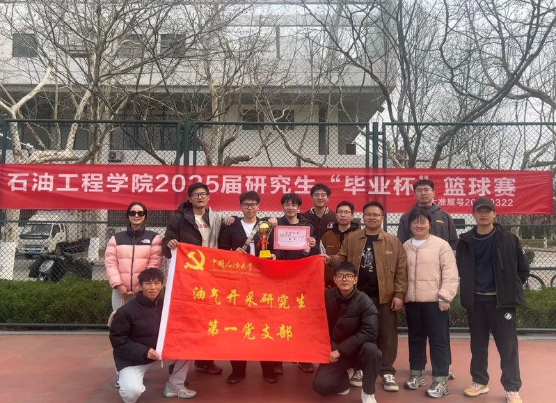 【本站讯】近日,由石油工程学院团委主办、院研究生会承办的2025届研究生“毕业杯”篮球赛于3月22日-28日在西北门篮球场圆满收官。本次比赛总持续7天,共12支党支部代表队、114名研究生参与竞技,经过多轮激烈角逐,最终油气开采研究生第一党支部勇夺桂冠,油气田化学研究生第四党支部获得亚军,油气井一、采油二、油藏三研究生党支部联队斩获季军。