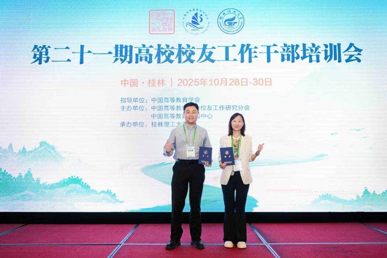 10月28日至30日,由中国高等教育学会校友工作研究分会和中国高等教育培训中心主办,桂林理工大学承办的第二十一期高校校友工作干部培训会在桂林召开。我校控制科学与工程学院党委书记刘臻,合作发展处副处长、校友总会副秘书长孙茂骥参加此次培训,与全国200余所高校的300余位校友工作者共同研讨交流。