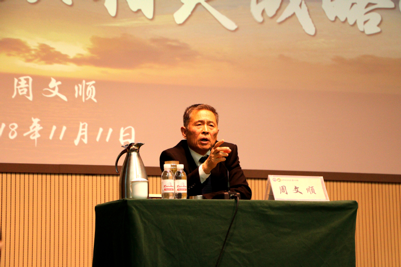 周文顺从近几年热度较高的南海及钓鱼岛问题讲起,幽默精辟地分析了当前中国在这一方面的外交政策。针对台湾局势,周文顺通过举例、类比等方法,对两岸关系的发展形势进行了深入浅出的全面讲述,并且从战略高度分析、讲解了两岸关系发展的趋势以及发展两岸关系应把握的关键问题。他提出:正确看待和发展两岸关系,要坚持一个中国的原则,更要认清两岸关系的现状与危机。最后,周文顺通过分析关键词句详细讲解了当前解决台湾问题的相关战略文件,并表达了他对两岸关系会在未来朝着积极方向发展的愿望与信心。