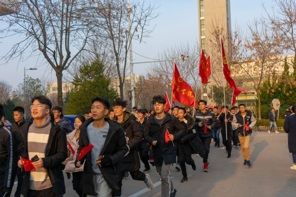 之后,新能源学院装控1902班朱澳宣读《纪念一二·九运动倡议书》。他倡议学生要热爱伟大祖国;树立远大理想;提升道德修养;敢于承担责任。宣誓完毕后,王峰为12.9校园迷你马拉松鸣枪发令,跑步正式拉开帷幕。