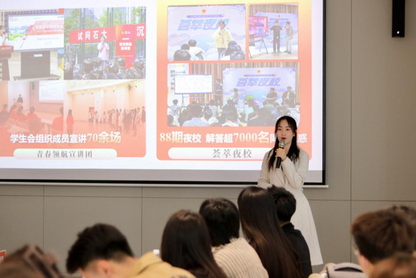 我校代表晋婕婷做经验分享 栾雯晶摄