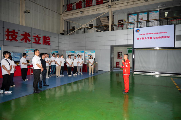 地球科学与技术学院组织“能源报国行”专项实践团现场工程师为同学们讲解水下采油树工作原理 刘旭文摄