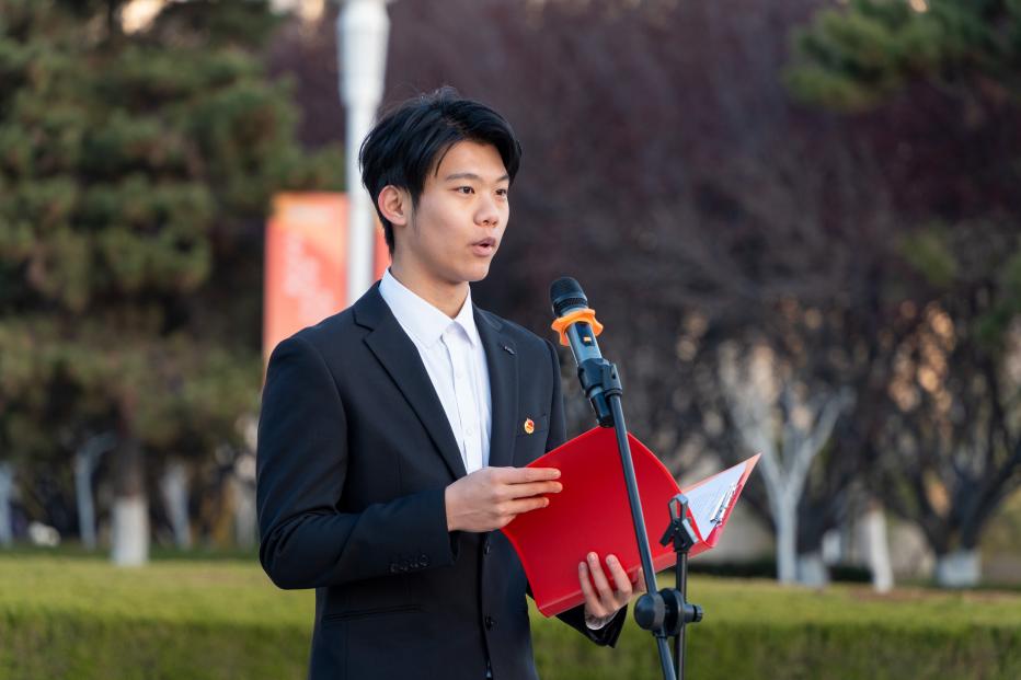 石油工程学院2024级本科生程佳玉作为新团员代表发言。她分享了自己在学业上深耕专业、在实践中践行责任、在学生工作中锤炼本领的成长经历,代表全体新团员郑重承诺:将以入团为新的起点,自觉追求思想进步,刻苦钻研专业知识,主动投身集体服务,把个人成长融入能源报国的时代使命,用实际行动诠释团员担当,为学校建设成为能源领域世界一流高校贡献青春力量。