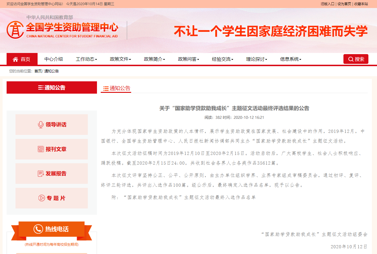 附:《关于“国家助学贷款助我成长”主题征文活动最终评选结果的公告》链接: