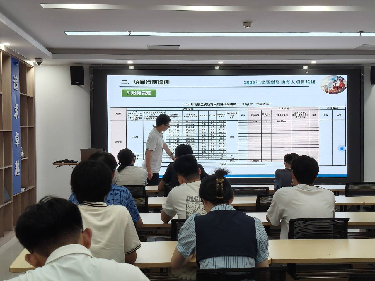 为鼓励支持学生在走进基层、服务社会中增强本领,学校公开遴选了2025年发展型资助育人项目,并于7月3日在学生一站式服务社区召开培训会,会议由学生资助中心张一波老师主讲,10个院(部)的实践队成员参会。